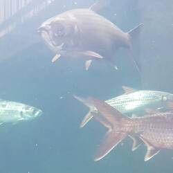 Fish that can spit water at overhanging leaves to get insects. Barramundi in the rivers.