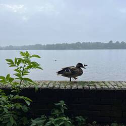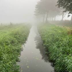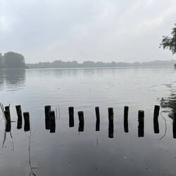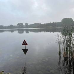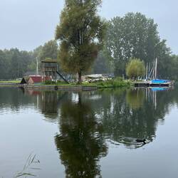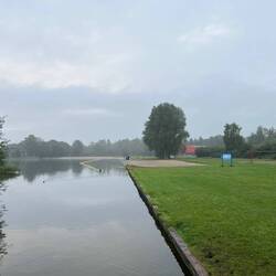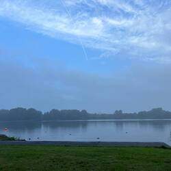 Tina fik løbet 9 km i morgendis, rundt om Caasperplas Sø, mens Hansi fik sine 2 kopper ☕️☕️, og tip fra naboen om autocampervask i Flensburg. Søen er også flot selv i morgendisen, en sjovLeggi altro