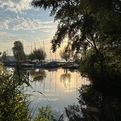 Sidste morgen på vores ferie, Tina tog 9 km i Jarplund og omegn, mens Hansi drak sine 2 kopper ☕️☕️. Den gamle Danske Højskole Jarplund ligger idyllisk, ved søen, og idag en flot solopgang.Leggi altro