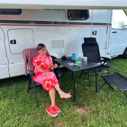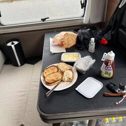 Så er vi kun omkring 300 km fra Poznan, som er vores første mål. Fandt en hyggelig rast og spise morgenmad på, og brødristeren til gaskomfuret, er i gang. Den er Hansi glad for
