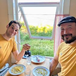 Mein Wildcampingplatz war eigentlich super, aber durch die hohe Luftfeuchtigkeit wurde alles klamm und ich klebte am Schlafsack. Kann ich nicht haben.
