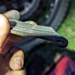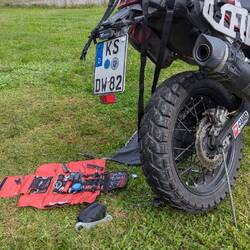 Ja blöd, meine Bremsbeläge sind fast weg und ich hab keinen Ersatz dabei. Damit hab ich jetzt nicht gerechnet. Zuhause waren sie noch fast voll.