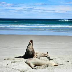 Heute habe ich zusammen mit Friederike und Frank einen Ausflug auf die Otago Peninsula gemacht. Dabei konnten wir zwei Robben zuschauen, die kurzzeitig gegeneinander gekämpft haben.