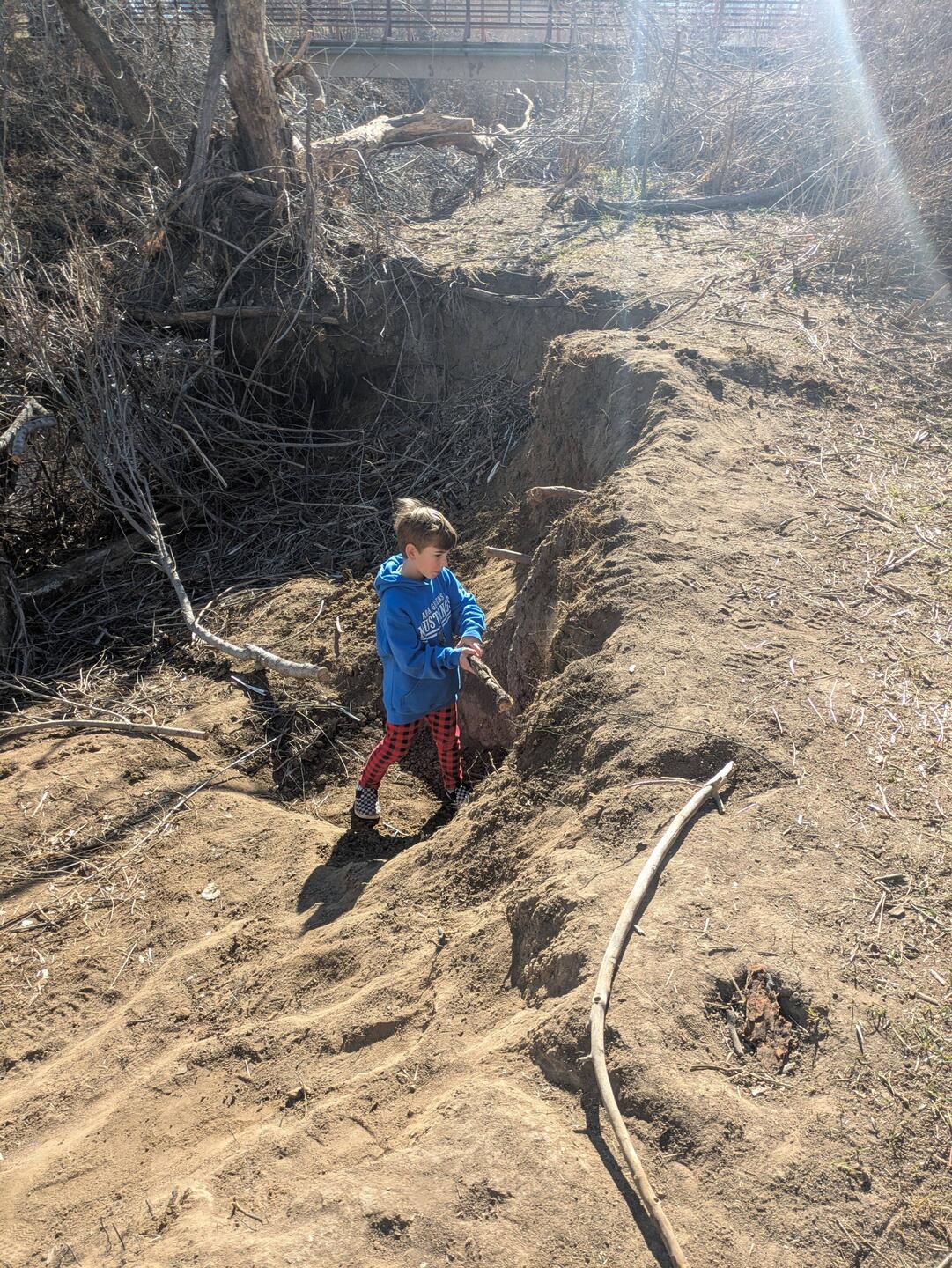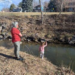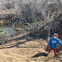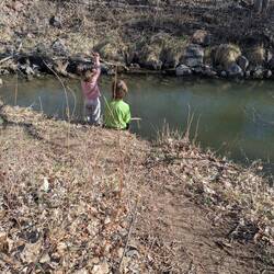 The boys school is next to the creek. Kids swear there are fish and crawfish. Not sure what fish uses rocks as bait. Also great playground and school yard is available also. Gorgeous day.