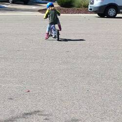 Alja has learned to ride her pedal bike all by herself. She sings while riding, "I did it on my own". An original!!