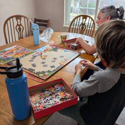 Baked gingerbread cookies, working on a puzzle. Plus boys seem to have a bit of a flu. Alja is digging dinosaurs bones