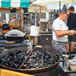 Heute nur kurz zum Frühstück in die Stadt. Wir müssen fit sein für heute Abend. Bei den Temperaturen müssen wir uns schonen 😎😉