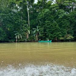 3,5 hours in and we can see the ocean mixing with the river. More animals, plenty of various birds. Probably more crocodiles below us.