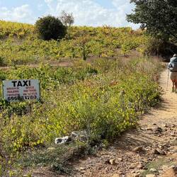 From here we headed off for Villafranca to find ourselves walking in a region of rolling hills, covered with wine grapes, showing their fall colors. We had barely seen anyone we knew for the entire day so it was a treat to run into Sara and Andrew in the last town before Villafranca. It was sad to leave them and head off to the next town.