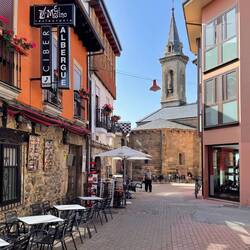 Our plan was to eat in Villafranca's city center before heading to our hostel and the surprises kept coming. We ran into Sherry and Bryan, from Georgia, who we had not seen since León. We thought they were a day ahead, so it was fun to see them and have dinner together. During dinner, thunder started booming and the sky opened in a downpour! So much for getting to our place dry. Peg was wishing we had left earlier as we were going to get soaked walking the 1 kilometer to our place. Just then I got a text out of the blue from the hostel saying it was raining really hard and asking if we wanted them to come get us. We were going to arrive at our destination dry after all! The Camino provides!