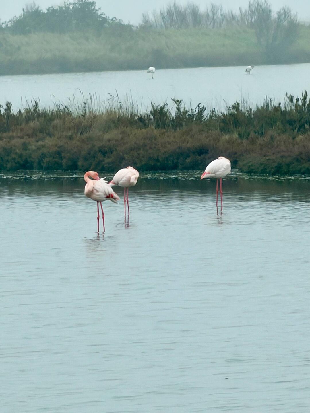 Da stehen bei 8 Grad die Flamingos im Wasser, und nicht wenige, überschlagen sind es min 100Stück. Im Frühjahr und Herbst stehen da 1500, da ist ja dann alles rosa🙃