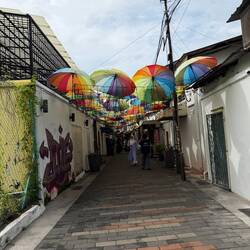 In Georgetown ist es fast menschenleer. Die Kreuzfahrtschiffe sind weg und somit viele Touristen. Und überall leuchtet es.