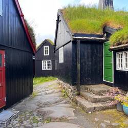 Die weitere Wanderung auf den Nugvan ist wind- und Wetter-bedingt ausgefallen. Dafür schlenderten wir durch Tinganes, das Regierungs- und Altstadtviertel von Torshavn, den Hafen und die kurzeLäs mer