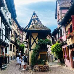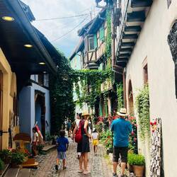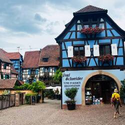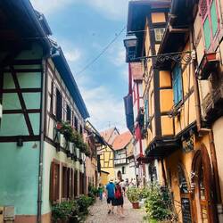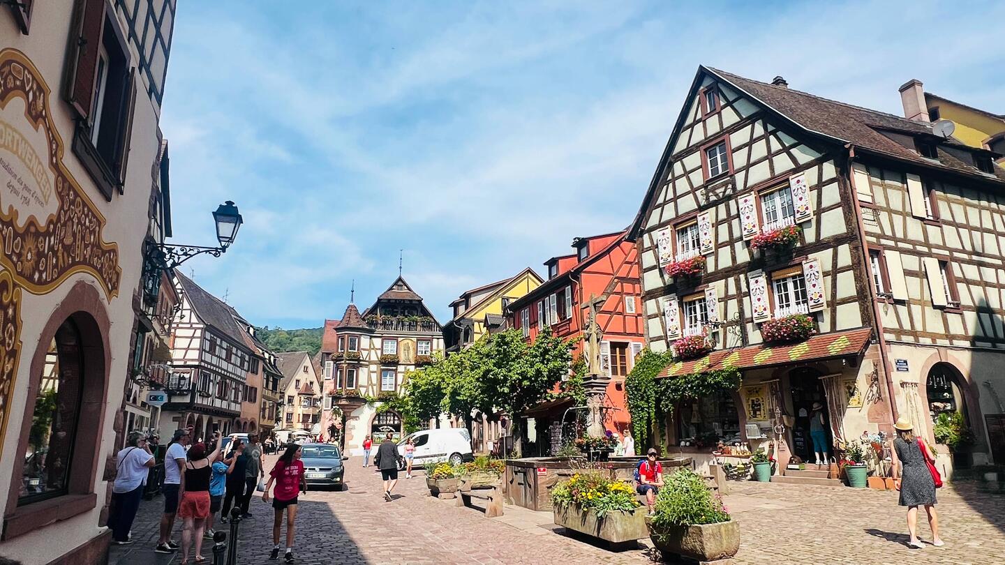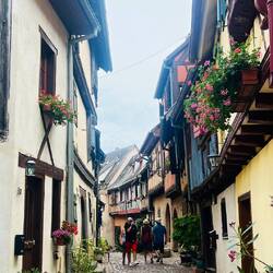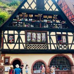 Der zweite Stopp heute war in Eguisheim, auch wieder eine schöne mittelalterliche Stadt mit vielen Fachwerkhäusern, netten Gassen, viel Blumen und vielen Cafés und Restaurants.