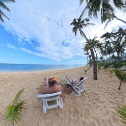 Der heute sich von seiner schönsten bis her je gesehenen Seite zeigt. Nach etwas Sonnen- und Ozeanbad, wollte ich hoch an die Bar um dort den Tag revuepassieren zulassen, beim aufstehen stieß ichBaca selengkapnya