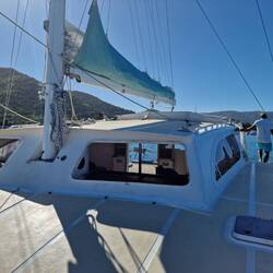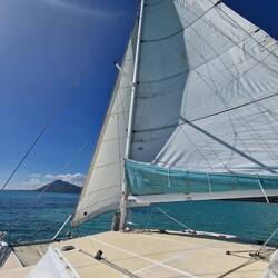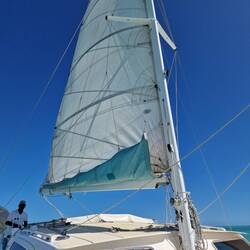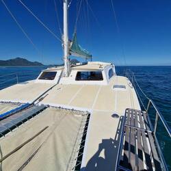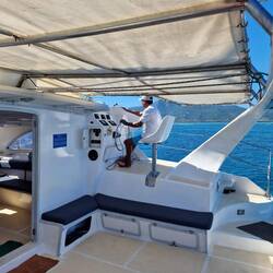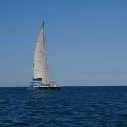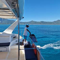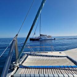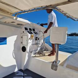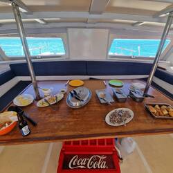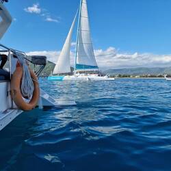 Kaum waren wir an Bord des Katamarans ging es auch schon los. Wir bekamen eine kurze Einweisung, was wo ist und wie der Tag heute abläuft.