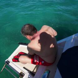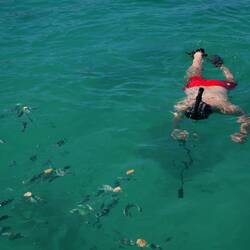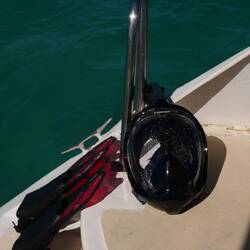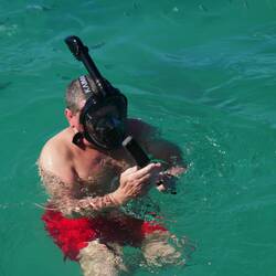 Wie man es sieht, spielte das Wetter voll mit. Ich ging schnorcheln, Anke blieb an Bord. Mal schauen ob und wann ich sie in diesem Urlaub ins Wasser bekomme.
