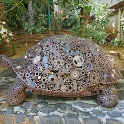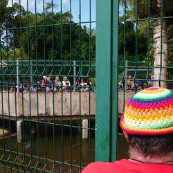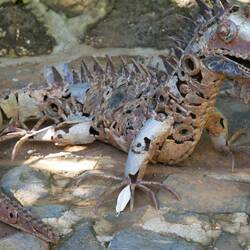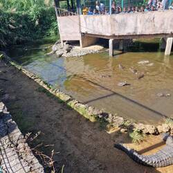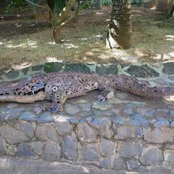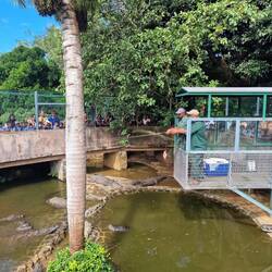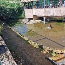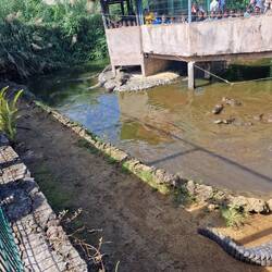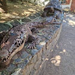 Auf dem Weg zum Park das erste mal getankt, umgerechnet etwas unter 40 € Dann weiter zum Park. Kunst am Eingang und wir müssen uns etwas beeilen, gleich beginnt die Fütterung der Krokodile.