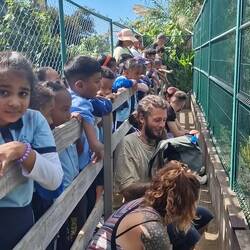 Den Punkt der öffentlichen Fütterung haben wir schnell gefunden. War schon ziemlich gefüllt, aber nicht von Touristen, sondern von Schulkindern. Alle in einer schönen Schuluniform und mächtig gutBaca selengkapnya