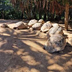 So viele Schildkröten haben wir noch nie auf einen Haufen gesehen. Hier im Park bemühen sie sich sehr erfolgreich um die Nachzucht und auch die Schildkröten selber geben sich große Mühe!!Baca selengkapnya