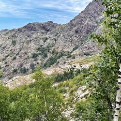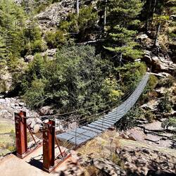 13:04 Uhr: Okay, daran, dass die Einträge weniger werden, erkennt man schon, dass es auch deutlich anstrengender wurde. Der Abstieg zieht sich wieder sehr lange hin, aber endlich sehe ich die Brücke, die über den Fluss führt. Danach geht's noch einmal in den Berg herum und dann bin ich da. 😥 Uff!