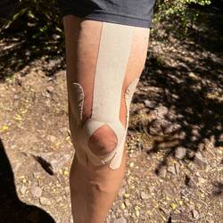 Nicht nur aus Langeweile hab ich mir mein linkes Knie getappt. Das hat mir beim Abstieg etwas zu schaffen gemacht. Morgen geht es schon noch einmal ein paar Meter hoch und runter und übermorgen stehen dann 1400 m Abstieg an die muss ich irgendwie überstehen.