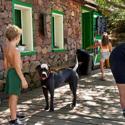 Etwas näher an der Festlandküste wird es endlich ruhiger – oder hat man sich daran gewöhnt? – auf jeden Fall öffnet das Selbstbedienungsrestaurant und die Leute stehen Schlange für extrem teure Pommes. Ich habe mein Picknick selbst mitgebracht und staune nur über den Preis vom korsischen Bier Pietra – es ist mit 5,50€ noch einmal 0,50€ teurer als auf den Refuges!