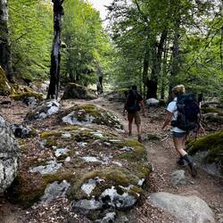 Im wesentlichen besteht der Tag heute aus 600 m Anstieg gefolgt von 700 m Abstieg. Das ganz natürlich schön über Steine und Platten, so dass man jeden Schritt genau überlegen muss. Dazwischen gibt es auch ein paar Bouldereinlagen.