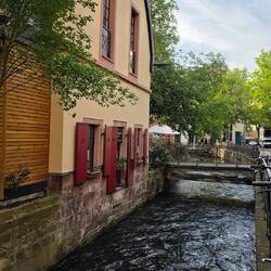 Als nächstes steuern wir Kaysersberg an. Es ist eigentlich noch schöner als Eguisheim. Das liegt auch daran, dass es an dem wunderschönen Flüsschen »Weiss« liegt.