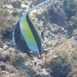 Unser Boot stoppte an einer sehr seichten Stelle innerhalb des Korallenrings der Insel, damit wir schnorcheln konnten. Wir liehen uns Flossen aus, setzten unsere Schnorchelmasken🤿 auf und sprangenRead more