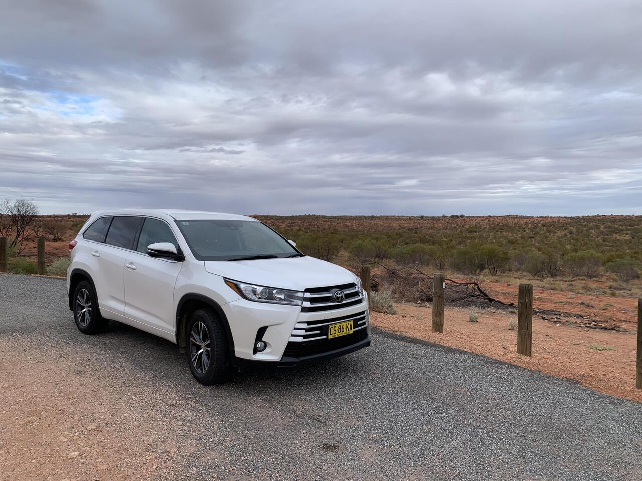 Mit dem Toyota Kluger von Alice Springs nach Ayers Rock und gerade noch genug Licht für einen Blick auf den Uluru.