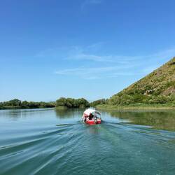 Doch nicht nur die Flora und Fauna bringt uns der Guide näher. Wir erfahren viel über die Regeln oder eben nicht Regeln der beiden Ländern. Montenegro legt viel Wert auf Naturschutz, weshalb das Seeufer nicht verbaut werden darf. Der montenegrinische Teil des Sees ist Nationalpark, für den wir ein Billette für 5 Euro lösen müssen. Nicht so auf der albanischen Seite. Dort ist der See kein Naturschutzgebiet und das Ufer recht verbaut.
