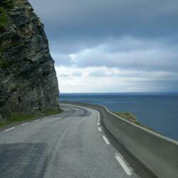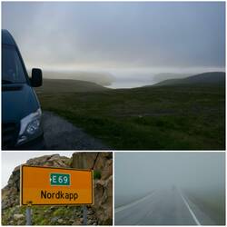 Die letzten Kilometer zum Nordkap führt die Straße direkt entlang der Küste, wieder mit tollen Aussichten. Wir hatten dann aber doch noch Pech mit dem Wetter, die letzten Kilometer war der Nebel so dick, das wir kaum 50 m weit sehen konnten.