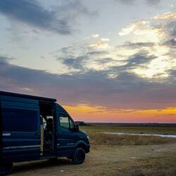 Kaum angekommen ist die Sonne dann auch schon untergegangen, direkt vor den, eben noch durchquerten, Industrieanlagen.Read more