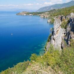 Die Straße ging dann entlang des Ohridsees. Touristisch ziemlich gut erschlossen und auch sehr schön. Die Stadt Ohrid hat den bekannten Ostblockcharme, ist jedoch auffällig sauber. Hier tut sich was in den Köpfen.