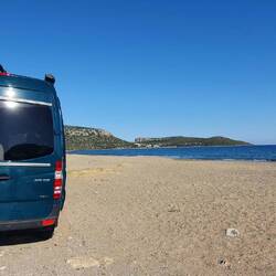 Nach der Erkundung war der Nachmittag schon recht vorangeschritten, und wir wollten nicht mehr besonders weit fahren. Eine kleine Bucht mit schönen Strand und Stellplätzen direkt am Wasser war Tina zu voll.....tja die Ansprüche steigen. Wir sind also weitergefahren. Und dann kamen erstmal 2 Stunden schöne, wellige Berge und kleine Dörfer, aber nichts zum Stehen mit Aussicht.