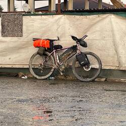 Es hat die ganze Nacht durchgeregnete und gestürmt, gut das man irgendwann auch bei so einem Wetter im Zelt Schlaf findet. Die Strecken sind endlos. Eine Holperstraße nach der anderen.