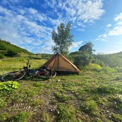 Mal wieder mit Nassem Zelt los. Und mein Zweites Frühstück inhaliert ist mir aufgefallen ich habe meine Powerbank am Campingplatz vergessen, also nochmal 5km zurück. Somit sind heute 15 Unnötige Czytaj więcej