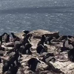 Rowena SingerWe didn't get a chance to see these particular penguins on the Antarctic peninsula, and I would have mis-categorized them as macaroni penguins. Great shot of a parent and its baby penguin looking straight at camera!