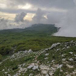 Ready climb until the last part... It got really kind of Alpine. Rocky. We've reached the summit at 18:10 and headed down fast.
