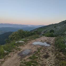 Early walk thru mud, puddles, meadows (which are under water) and sometimes paths and forest roads.