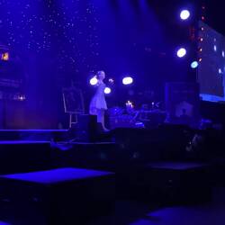 Ein absoluter Höhepunkt. Für mich ist das kurze Konzert mit Seum inklusive Tanzeinlagen von vier Mädels. N.e.p.a.l. - Never ending Peace and Love. Wir tanzen volle Kanne vor der Bühne mit. Großartige Energie! In der Kaffeepause treffe ich mich noch einmal mit Angela draußen im Flur. Danach ist mein Platz vorn besetzt - ich wähle einen Stuhl für mich in der zweite Reihe. Und witzigerweise setzt sich Dr. Ruediger Dahlke neben mich. Gordon Smith ist gerade dabei, als Medium zu agieren. Ist auch ein netter Typ. Ich habe voriges Jahr in der VIP Lounge mit ihm an einem Tisch gesessen.