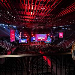 Es geht los. Da ich nicht im Hotel frühstücke, kann es so ziemlich gleich nach dem Aufstehen und der Morgentoilette losgehen. Ich laufe zum Barfüsser Platz und nehme die Tram Nummer 14. Sie hält direkt vor der Sankt Jakobs Halle. Gegen viertel neun bin ich dort. Es sind zwar schon Teilnehmer da, jedoch ist alles noch sehr entspannt. Ich muss sogar noch kurz am Eingang warten. Auch in diesem Jahr habe ich mir das Black Ticket gegönnt. Damit habe ich quasi VIP Status und kann auch in die Lounge, wo es zu jederzeit Getränke und Snacks und dann auch die Mahlzeiten gibt. Außerdem kann man da auch zwischen den Vorträgen mal pausieren oder das ganze Spektakel vom oberen Balkon aus betrachten Und – mit etwas Glück trifft man dort auch den einen oder anderen Speaker.