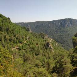 Auf dem Rückweg sind wir in Les Vignes von der einen Hochebene hinunter in das Tal des Tarn Flusses gefahren und gleich auf der anderen Seite wieder hoch auf die nächste.