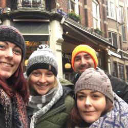 We followed Jordan’s yellow hat to Vondelpark then made it back in good time for our pizza cruise (via the flower market).