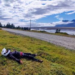 We were in the way of seeing Viking-era farm, those long houses. The track was offroad with nice martian landscape.
