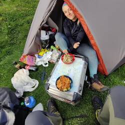 The location of this campsite is very good. We setup the tent next to a small river and in the background there was a waterfall.