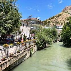 Unterwegs machen wir eine längere Pause im Canyon-Städtchen Darende. Hier könnte man länger bleiben und eine Wanderung durch den Canyon unternehmen. Stattdessen lassen wir uns den Tee mit den Füßen im Wasser schmecken. Ein ganz cooles Gefühl. Oben heiß und unten kalt. 😉