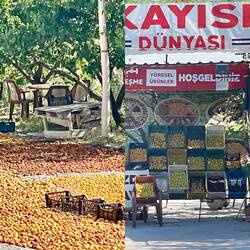 Ebenso wunderbar schmecken getrocknete Aprikosen und andere Früchte. Sie liegen am Wegesrand oder vor den jeweiligen Häusern zum Trocknen und werden ebenfalls später an den Ständen am Straßenrand verkauft. Nicht haltbar gemacht, sondern frisch getrocknet! Ein Genuss.