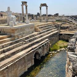 Wir machen, wie immer, das Beste draus, aalen uns in den Pools die gefüllt sind und laufen durch die Ruinen der antiken Stadt Hierapolis, die der pergamenische König Eumenes ll. 190 v. Chr. oberhalb der Terrassen als Heilbad gegründet hat. Ich liebe es durch alte Steine zu laufen und meiner Phantasie freien Raum zu lassen.